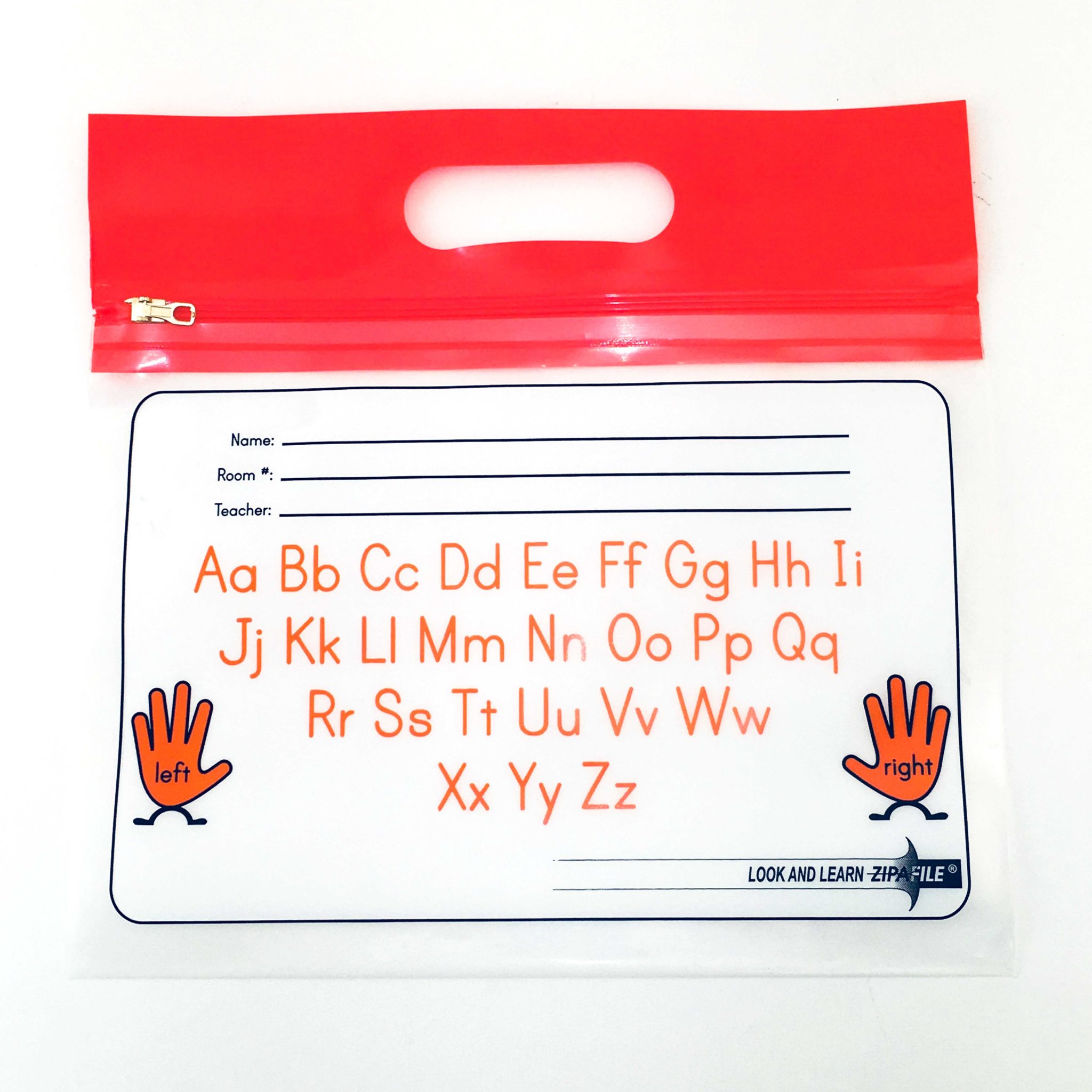 Orange Handle Alphabet ZIPAFILE Look and Learn Bag – Pack of 25. The bright handle storage bags are a fun way hold materials or send items home with children while adding educational value. Each pack includes 25 bags.